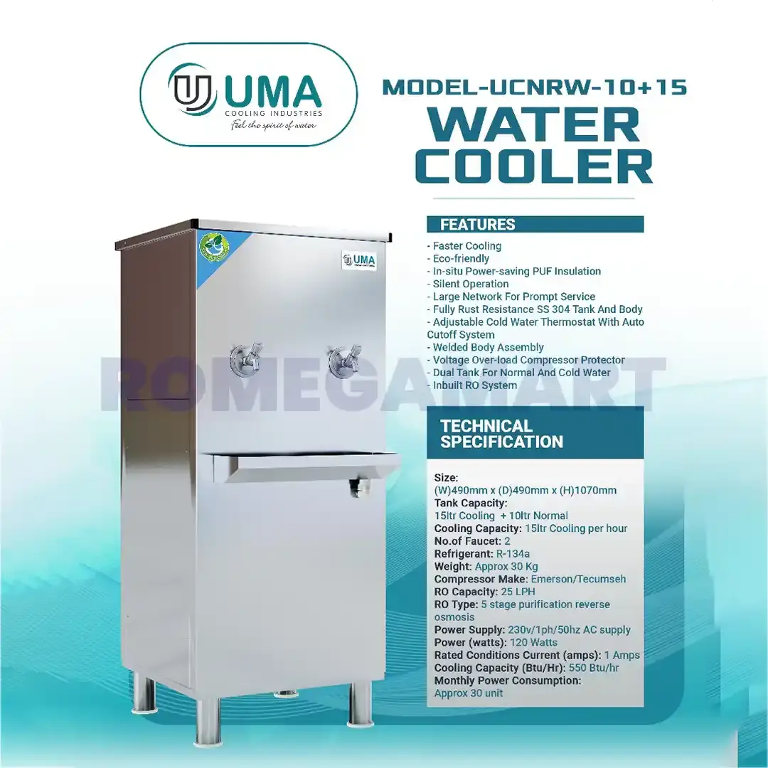 Perfect for small workplaces, shops, or institutions, the UMA UCNRW-10+15L 2 Tap Water Cooler offers superior quality, efficiency, and value — available now at the best wholesale price only on Romegamart.