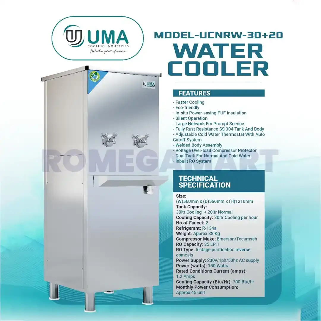 Ideal for schools, offices, hospitals, canteens, and small factories, the UMA UCNRW-30+20L 2 Tap Water Cooler is the perfect combination of efficiency, strength, and affordability — now available at the best wholesale price on Romegamart.