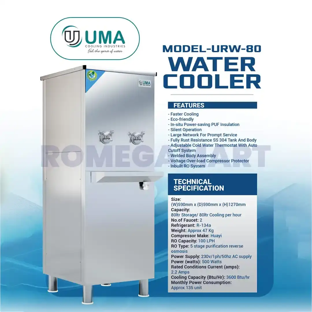 Whether you need a reliable 2-tap water cooler for commercial or domestic use, the UMA URW-80 Liter model delivers unmatched quality and performance — all at the best wholesale price on Romegamart.
