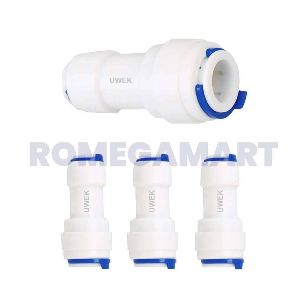 The UWEK 3.8 Inch Straight Connector Reducer is designed for use with water purifiers. It features a 1.4-inch jointer on both sides, allowing for a secure push-fit connection. This connector reducer is suitable for various water purifier models and is sold in a combo pack.