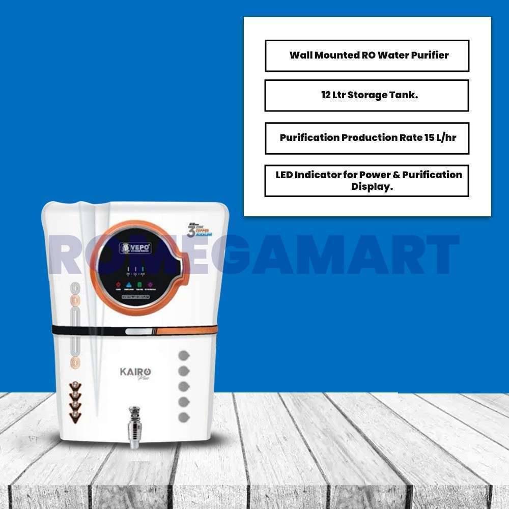 Vepo Kairo Plus White And Copper With Smart LED Display Alkaline+Copper+Zinc 12 Liter Storage Water Purifier- PRUDENCE MARKETING PRIVATE LIMITED