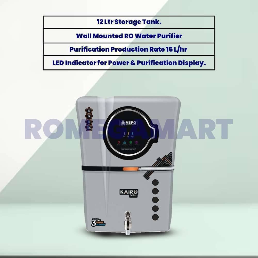 Vepo Kairo Plus With Zinc+Copper And Alkaline 12 Liter Storage Water Purifier with Grey Copper - PRUDENCE MARKETING PRIVATE LIMITED