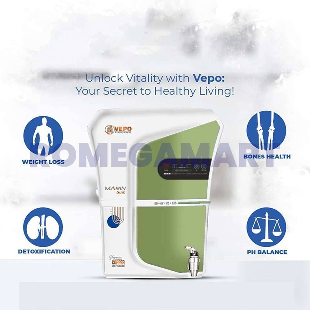 Vepo Marin Plus White Green Water Purifier 18 Liter Storage With Copper+Zinc+Alkaline For Home And Office- PRUDENCE MARKETING PRIVATE LIMITED
