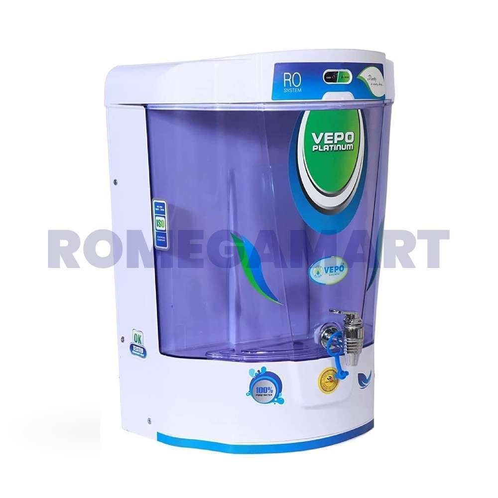 Vepo Platinum White With Blue Color 12 Liter Storage Water Purifier RO+UV+UF+TDS+ALKALINE+COPPER+ZINC - PRUDENCE MARKETING PRIVATE LIMITED
