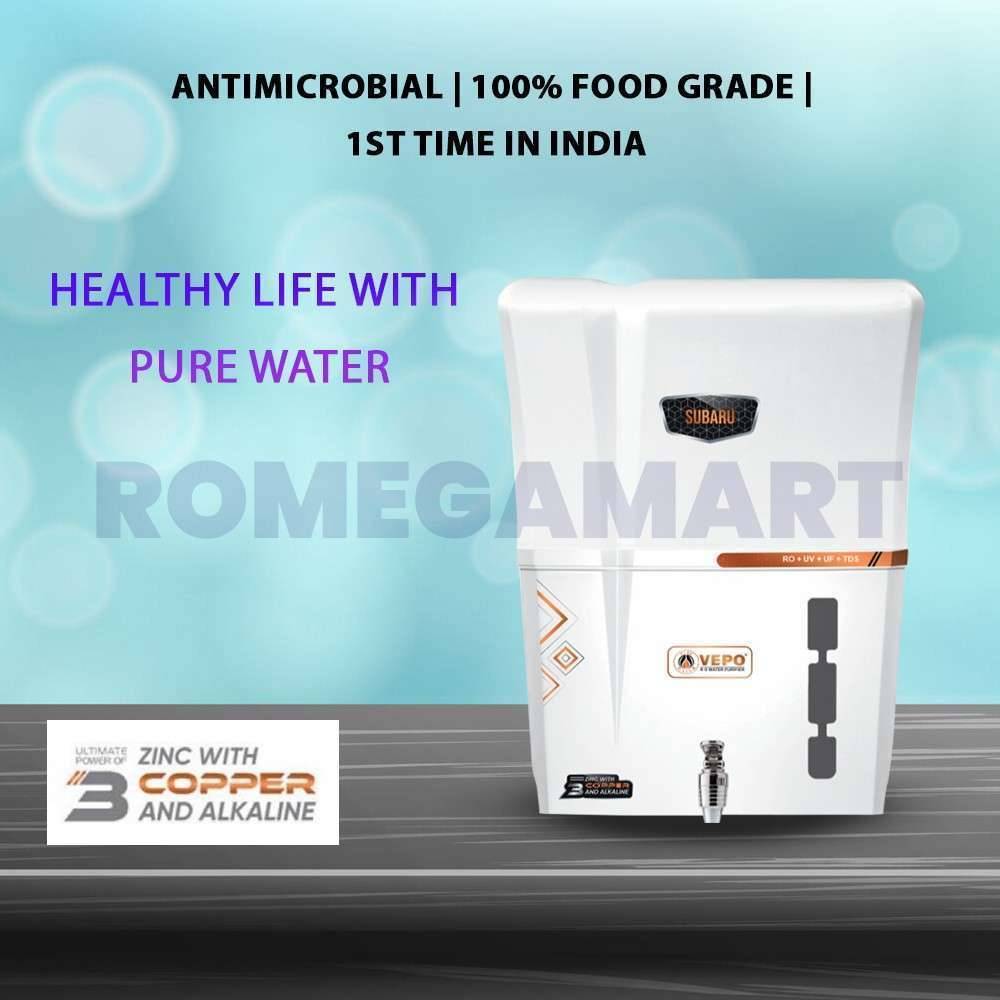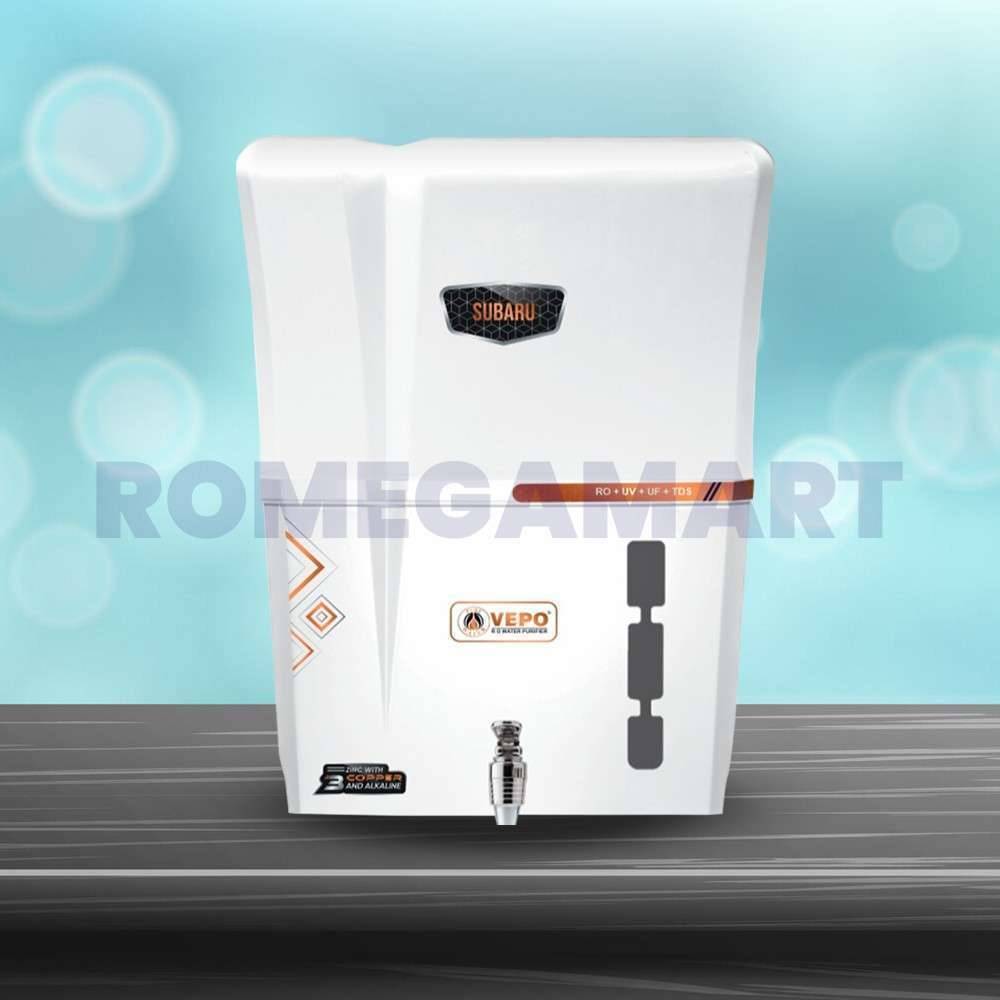The Vepo Subaru in white is a 12-liter water purifier made from 100% food-grade material, ensuring safety and durability. With a sleek design and LED indicator for real-time monitoring, this purifier is perfect for households or small offices. Combining style and functionality, the Vepo Subaru provides clean and healthy drinking water.
