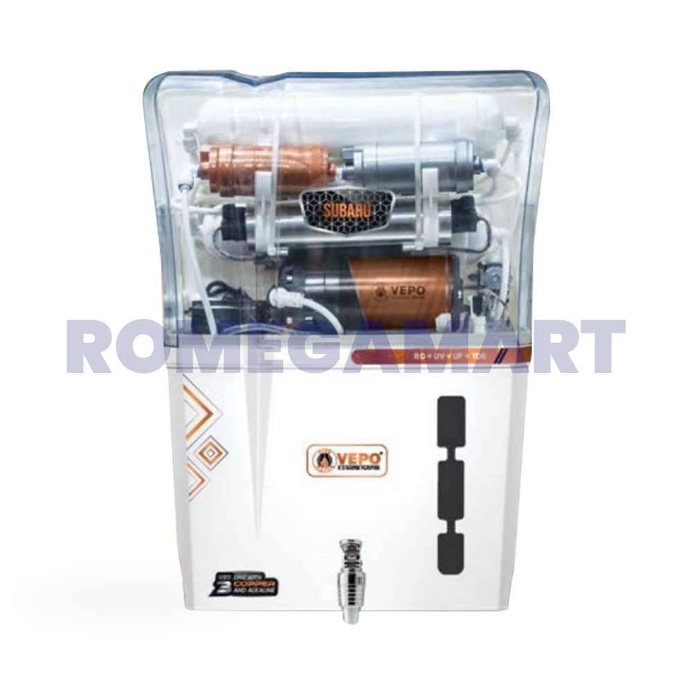 The Vepo Subaru Water Purifier, offered by Prudence Marketing Private Limited, features a sleek white design with a transparent 12-liter storage capacity. It includes an LED indicator for easy monitoring of water quality and purifier status. This efficient purifier ensures clean and safe drinking water, combining modern aesthetics with functionality. Ideal for households, its large storage capacity makes it suitable for families, providing a continuous supply of purified water. The transparent storage allows for easy water level checks, while the LED indicator adds a touch of modern convenience, ensuring a reliable and user-friendly experience.