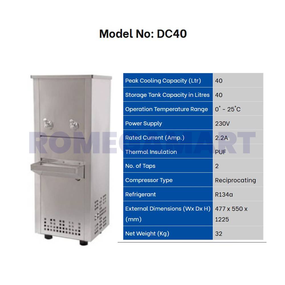 The Water Cooler SS Model DC 40 by Manyug Enterprises is a top-tier cooling solution crafted from premium-grade stainless steel for durability and rust resistance. Its elegant silver finish adds a modern touch, while the high-capacity design makes it ideal for offices, schools, and commercial spaces. Equipped with an efficient cooling system, the DC 40 ensures a constant supply of chilled water, combining style, reliability, and affordability in one package.