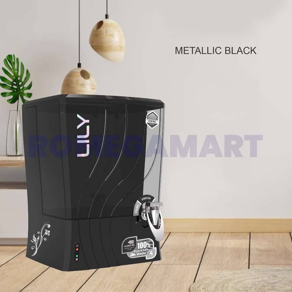 The WaterLilly Metallic Black Water Purifier is a sleek and efficient solution for domestic water purification, designed with both style and functionality in mind. With a 10-liter storage capacity, it ensures a steady supply of clean, safe drinking water for your household. The metallic Black finish adds a modern, elegant touch to your kitchen. Equipped with advanced filtration technology, it effectively removes impurities, bacteria, and viruses, delivering pure water. Easy to maintain, it is ideal for families looking for a reliable and aesthetically pleasing water purifier that complements contemporary home decor.