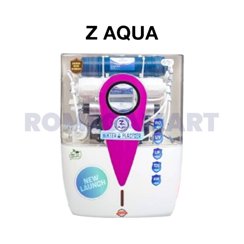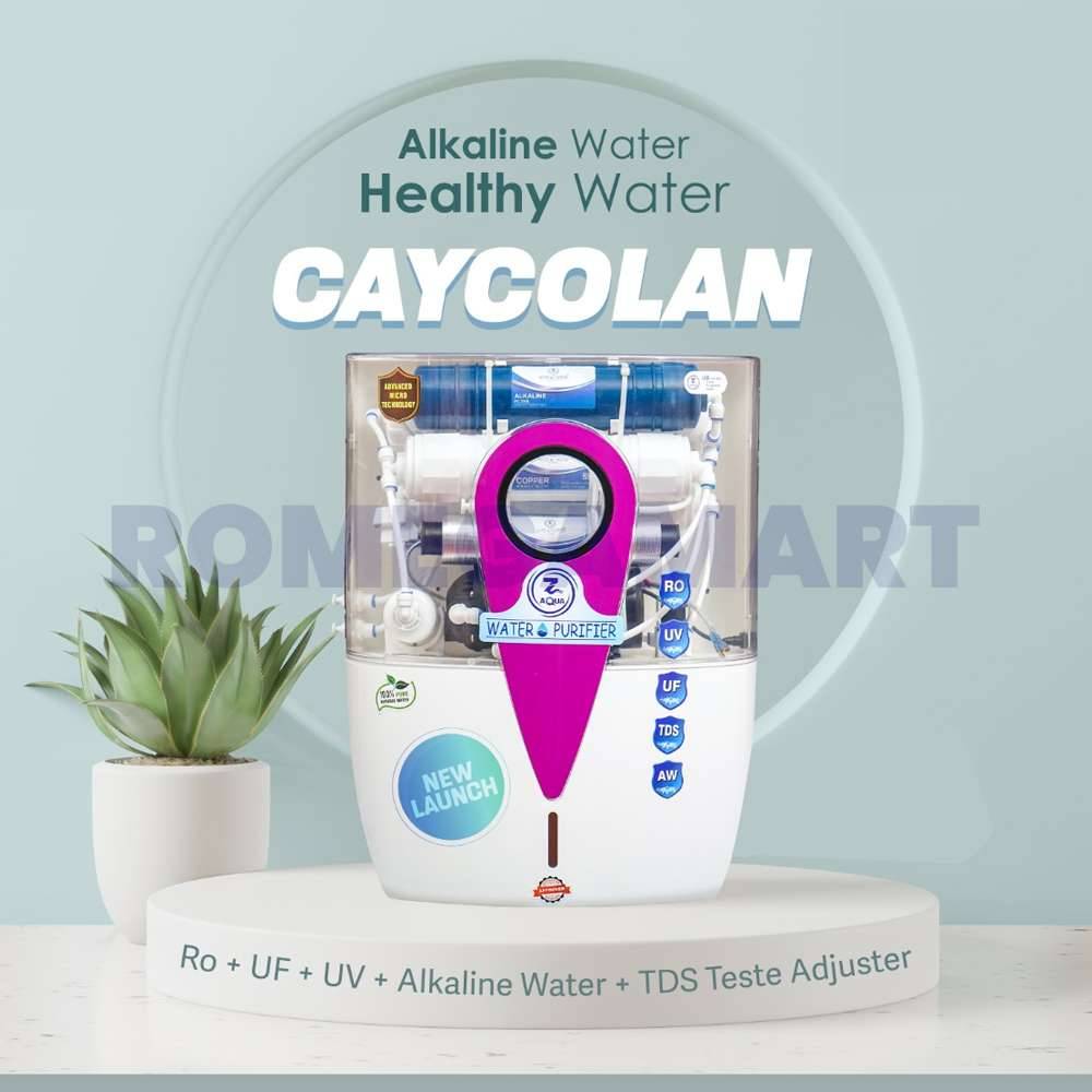 Z Aqua Caycolan Water Purifier in white with pink accents is a stylish and efficient 12-liter storage RO+UV+UF+TDS+AW purifier. It ensures multi-stage filtration, removing impurities, bacteria, and harmful substances while retaining essential minerals. With advanced purification technology and an elegant design, it is perfect for homes and offices, delivering clean and safe drinking water.