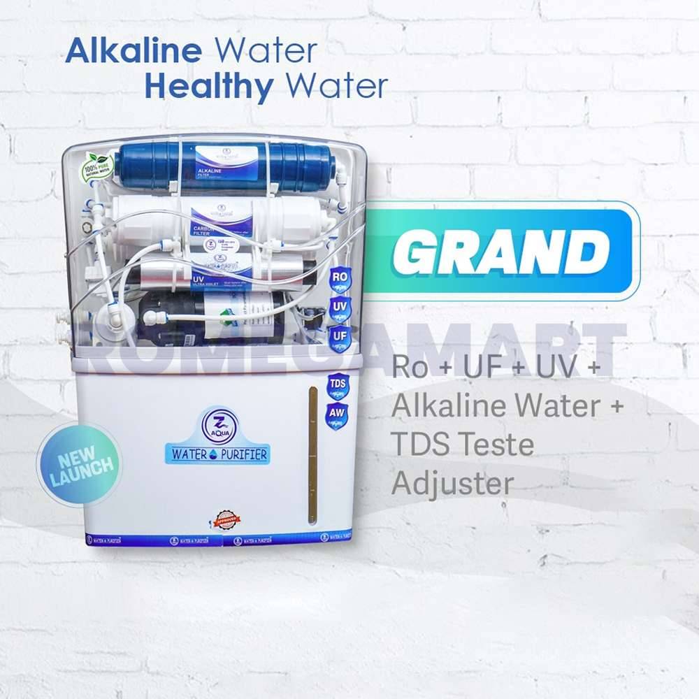 Z Aqua Grand White Transparent Water Purifier is a high-performance 12-liter storage RO+UV+UF+TDS+AW system designed for safe and healthy drinking water. Its advanced multi-stage purification removes impurities, bacteria, and harmful chemicals while maintaining essential minerals. The transparent design adds a modern touch, making it perfect for home and office use.